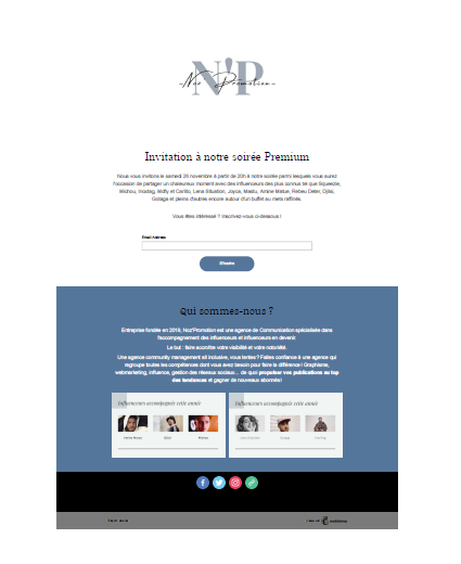 Une landing page est une page de site web qui va vous permettre de convertir vos visiteurs en prospects, en suscitant une action spécifique. Voici un exemple réalisé en cours afin d'apprendre à utiliser le logiciel Mailchimp.